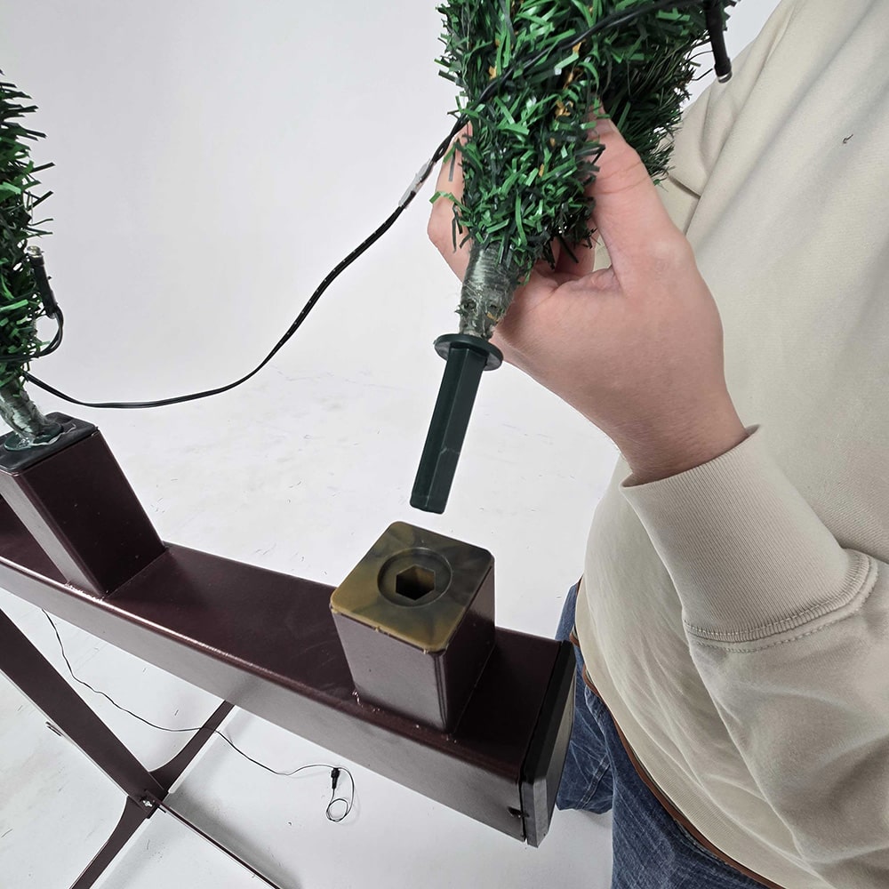 - Insert candle holders to the top of each frond, by placing the insert into the metal hole at the top. Make sure these are secure after placing.